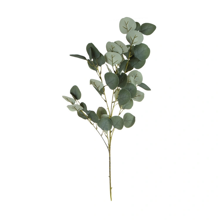 Dús, természetes hatású 90cm hosszú eukaliptusz ág, amely finoman árnyalt leveleivel és elegáns formájával prémium zöld dekorációt biztosít bármilyen enteriőrben.